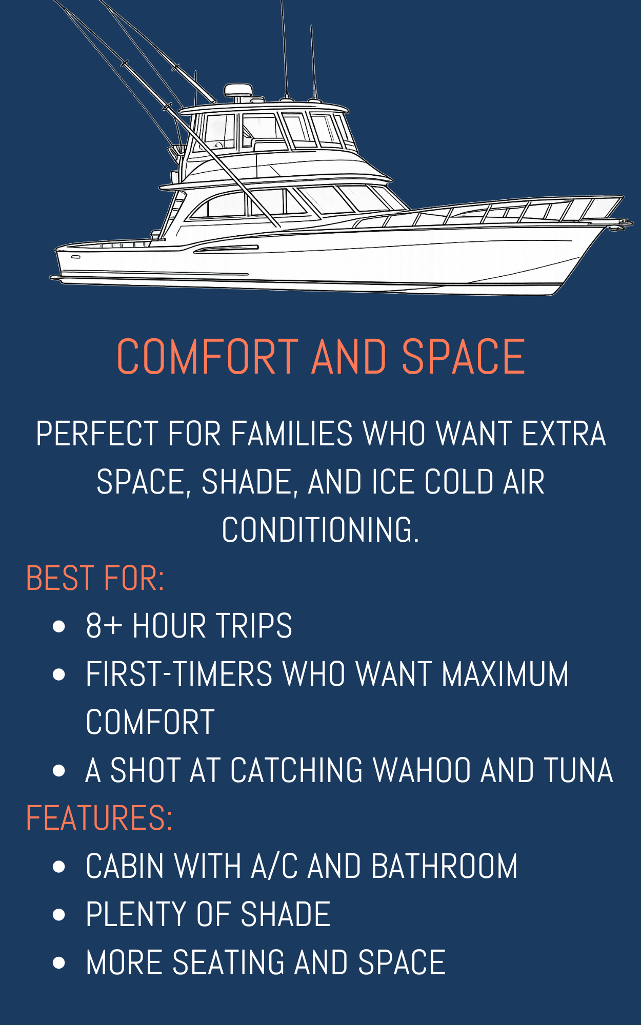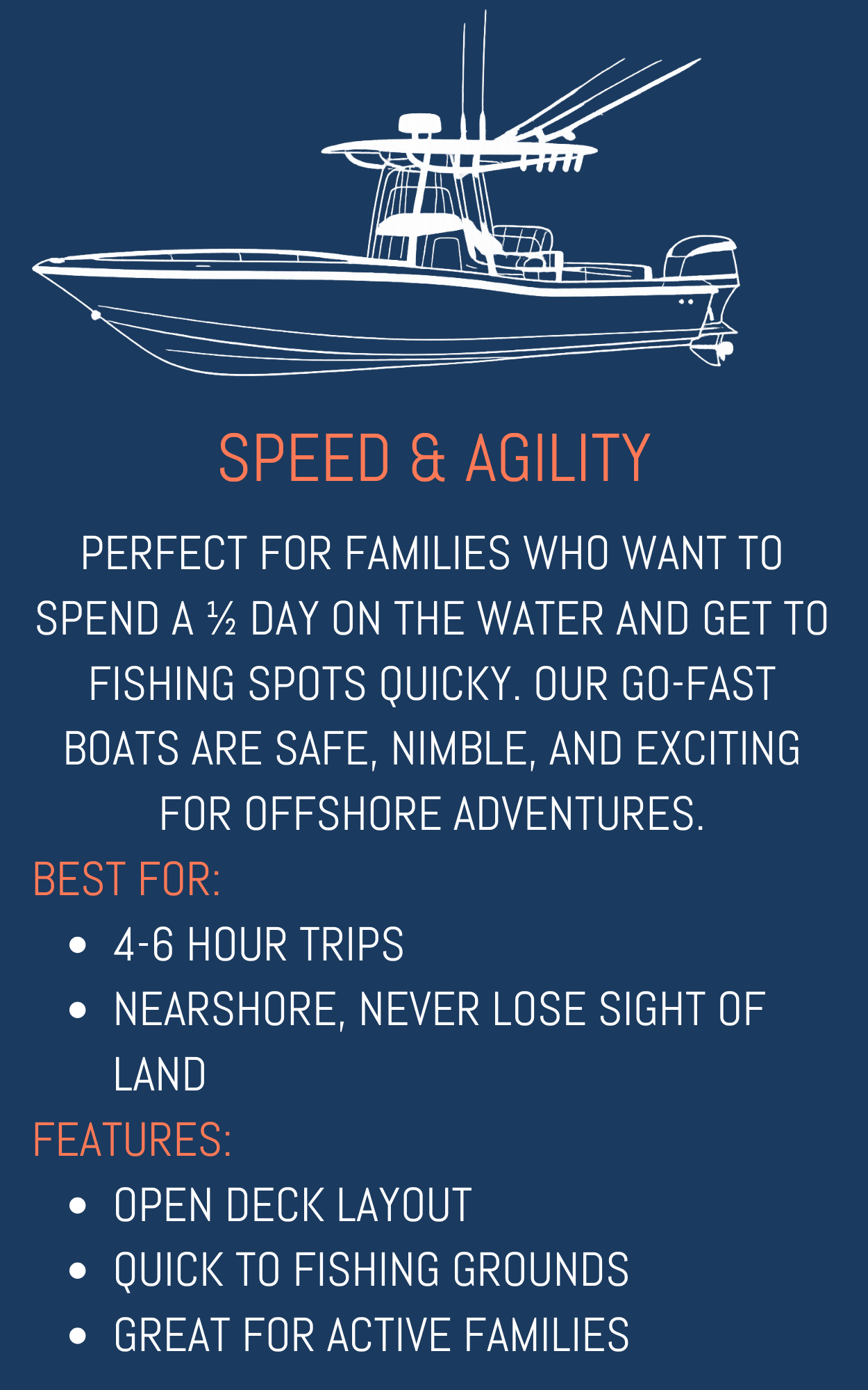 ALL BOATS ARE COAST GUARD CERTIFIED, FULLY EQUIPPED, AND CAPTAINED BY EXPERIENCED PROFESSIONALS